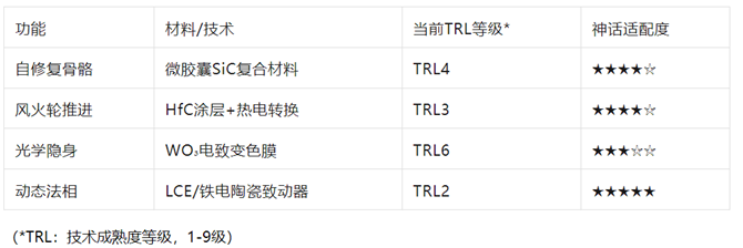 不过,实际中这些材料可能有局限性,比如陶瓷的脆性问题,自修复技术的可行性,或者能源系统的持续供应。但在虚构或艺术创作中,可以适当夸张,结合未来科技设想。